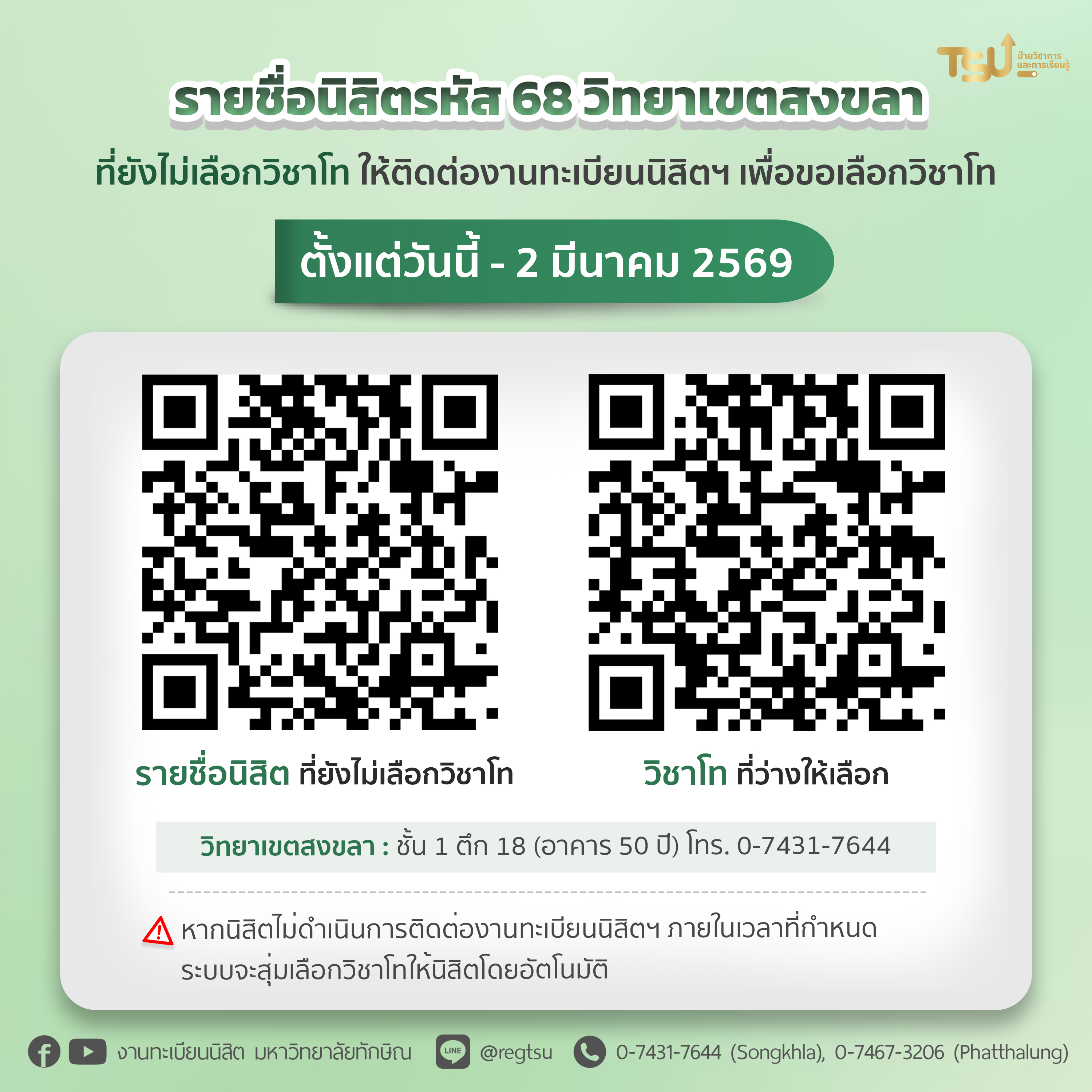 มอบเกียรติบัตรนิสิตที่มีผลการเรียนดี ประจำปีการศึกษา 2568 วิทยาเขตพัทลุง