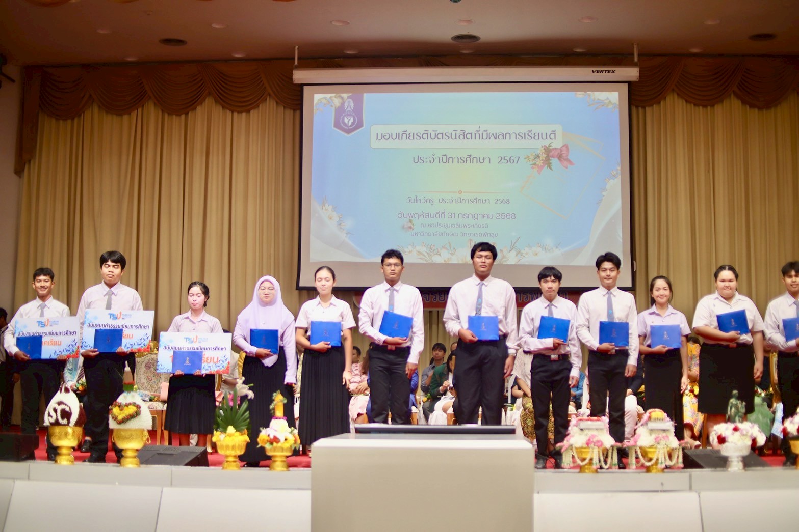 วันที่ 31 กรกฎาคม 2568 ฝ่ายวิชาการและการเรียนได้รู้ มอบเกียรติบัตรเชิดชูเกียรติให้แก่นิสิตที่มีผลการเรียนดีของแต่ละหลักสูตร เนื่องในวันไหว้ครู ประจำปีการศึกษา 2568 วิทยาเขตพัทลุง ณ หอประชุมเฉลิมพระเกียรติ นอกจากนี้ยังได้จัดส่งเกียรบัตรเชิดชูเกียรติให้แก่ผู้สำเร็จการศึกษาระดับปริญญาตรีที่มีผลการเรียนดีเด่น ประจำปีการศึกษา 2567