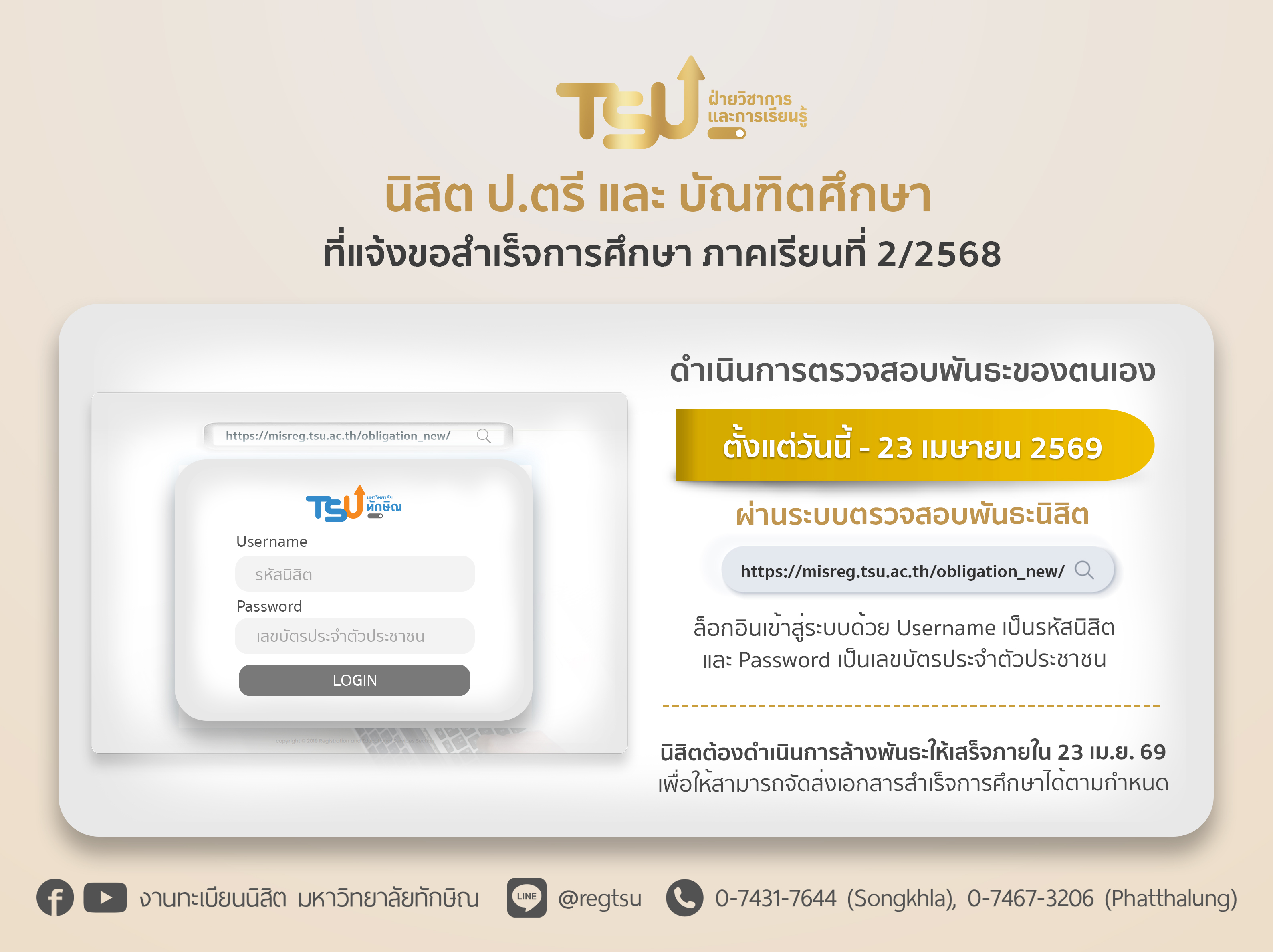 สนใจเข้าศึกษามหาวิทยาลัยทักษิณ